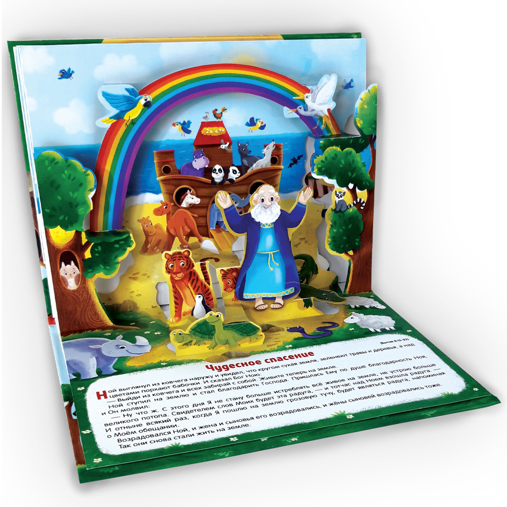 Книжка-панорамка «Ноев ковчег» из серии «Библейские истории» в доступной форме познакомит ребёнка с одним из важнейших и известнейших библейских сюжетов о Великом потопе и праведных деяниях Ноя. Внутри 12 страниц с красочными иллюстрациями и объёмными POP-UP картинками, которые помогут малышу лучше понять события и смысл истории. Книга отлично подойдёт для семейного чтения и обсуждения.