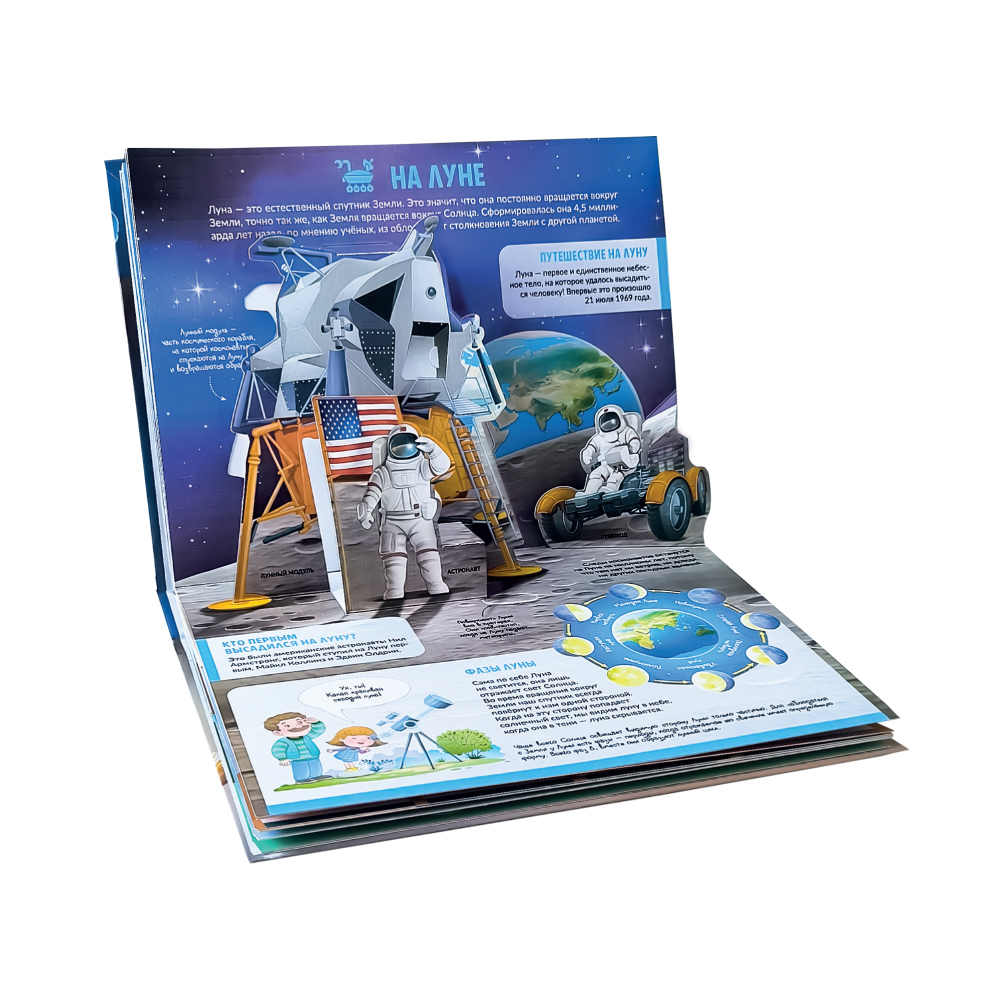 Серия «Детская POP-UP энциклопедия» от торговой марки Malamalama — это новые красочные энциклопедии с объёмными элементами, интересными фактами и множеством красочных иллюстраций! Мир далёких звёзд предстанет перед малышом на познавательных разворотах энкиклопедии «Космос. Человек на просторах Вселенной»! Внутри — наша Вселенная и Солнечная система, планеты и спутники, МКС, космические корабли и ракеты, марсоходы и мепфандры. POP-UP конструкции помогут не просто узнавать новое, но и отправиться в настоящее путешествие под свет далёких звёзд. Стремитесь в будущее вместе с Malamalama!