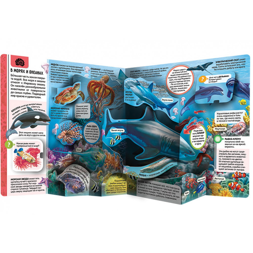 Книги из серии «Энциклопедия открытий» от торговой марки Malamalama — это настоящая сокровищница удивительных фактов и ответов на популярные вопросы маленьких почемучек. Книга «Животные» отправляет читателя в путешествие по природным зонам нашей планеты, открывает перед ним жаркую саванну и влажные джунгли, зелёные леса и холодные северные просторы. Объёмные POP-UP конструкции и красочные иллюстрации сделают изучение запоминающимся и лёгким.
