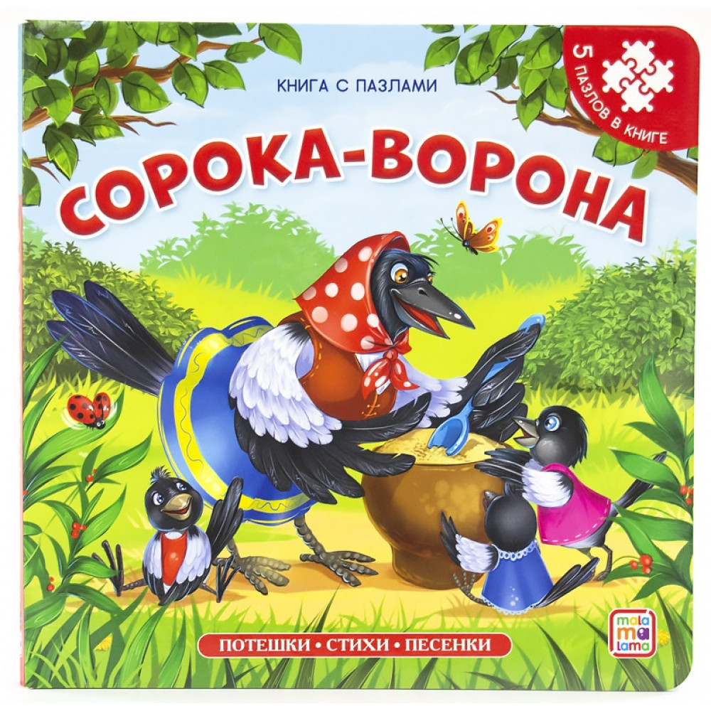 Книжка-пазл "Сорока-ворона" - это первое знакомство с русским фольклором. Внутри книжки 5 ярких пазлов из 6 крупных деталей с интересными иллюстрациям...