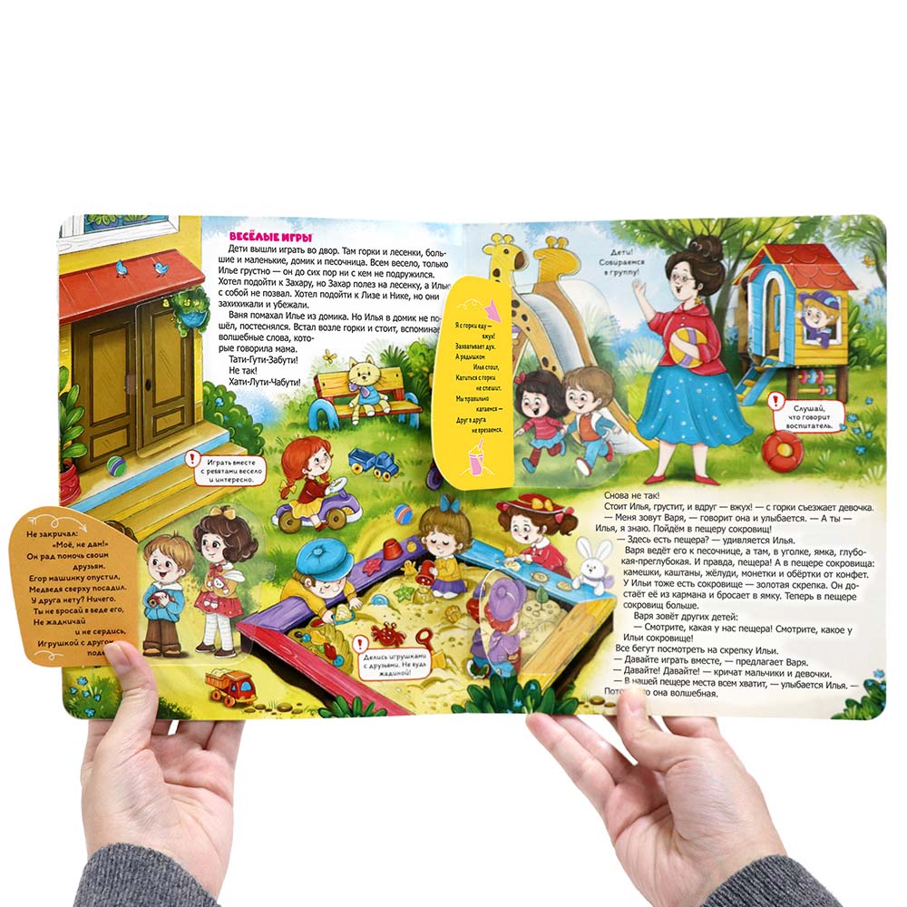 Книга «Детский сад без слёз» от торговой марки Malamalama — это добрая и уютная история о мальчике, который полюбил детский сад. Вместе с яркими иллюстрациями любознательный Илюша учится видеть волшебство в повседневных вещах, ищет новых друзей, открывает для себя участие, взаимовыручку, отзывчивость. В открывающихся окошках прячутся милые стишки, а персонажи переходят со странички на страничку. Книжка с окошками «Детский сад без слёз» — любимая история вашего малыша!