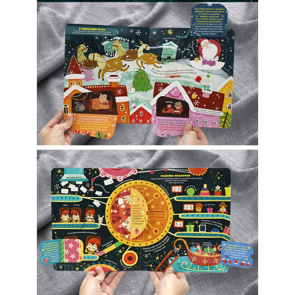 Книжка с окошками «В гостях у Деда Мороза» – ваш домашний портал в новогоднее настроение. Ваш малыш встретится с множеством новогодних персонажей, узнает, где живёт Дед Мороз, кто помогает ему создавать подарки, отвечать на письма, принимать гостей. Фабрика подарков, волшебные сани, сверкающий снег, ёлка и традиции – всё зимнее волшебство под обложкой книги «В гостях у Деда Мороза» в виде окошек, красочных иллюстраций и интересных фактов. Отличный подарок для вашего ребёнка, который поможет вам провести время вместе, открывая для себя новые грани удивительного праздника.