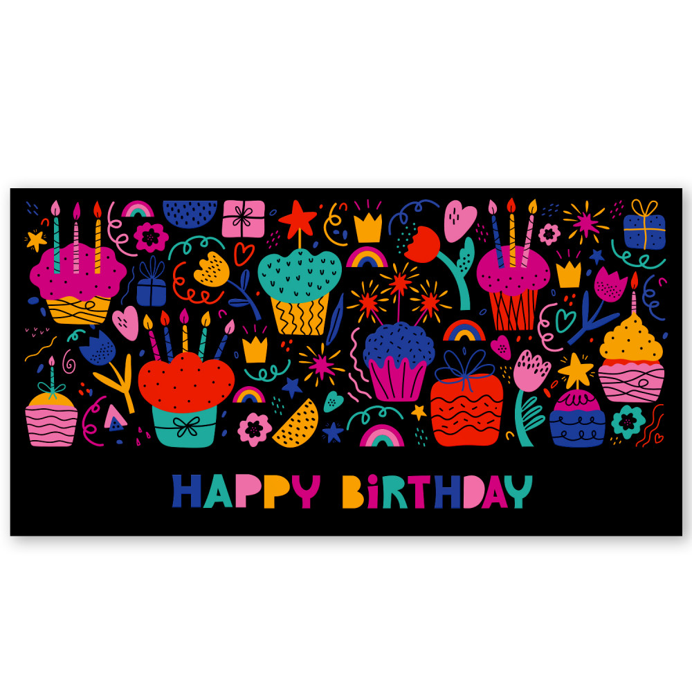 Конверт для денег «Happy Birthday. Вид 1» предназначен для поздравления с днём рождения. Конверт выполнен из мелованного картона с золотым тиснением и выборочным УФ-лакированием. Формат 85×162 мм.
