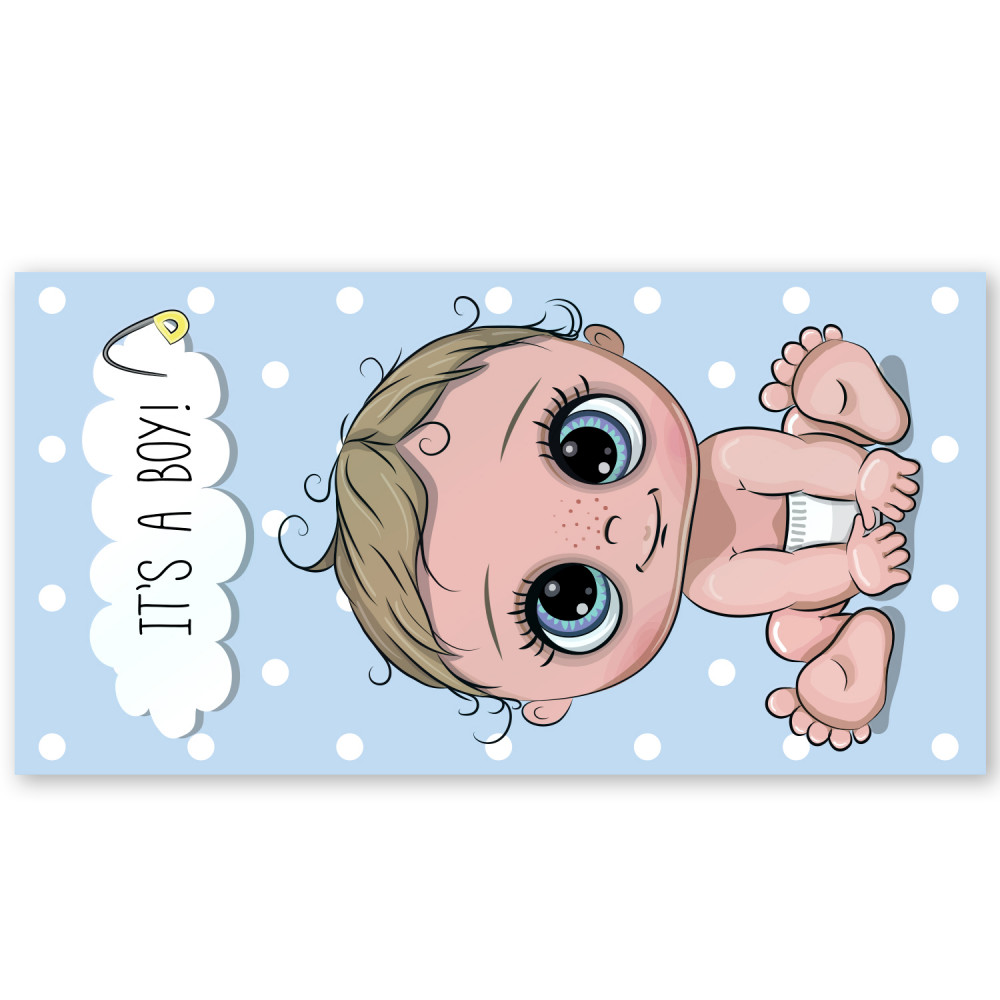 Конверт для денег «Рождение малыша. Мальчик» предназначен для поздравления с рождением ребёнка. Конверт выполнен из мелованного картона с выборочным УФ-лакированием. Формат 85×162 мм.