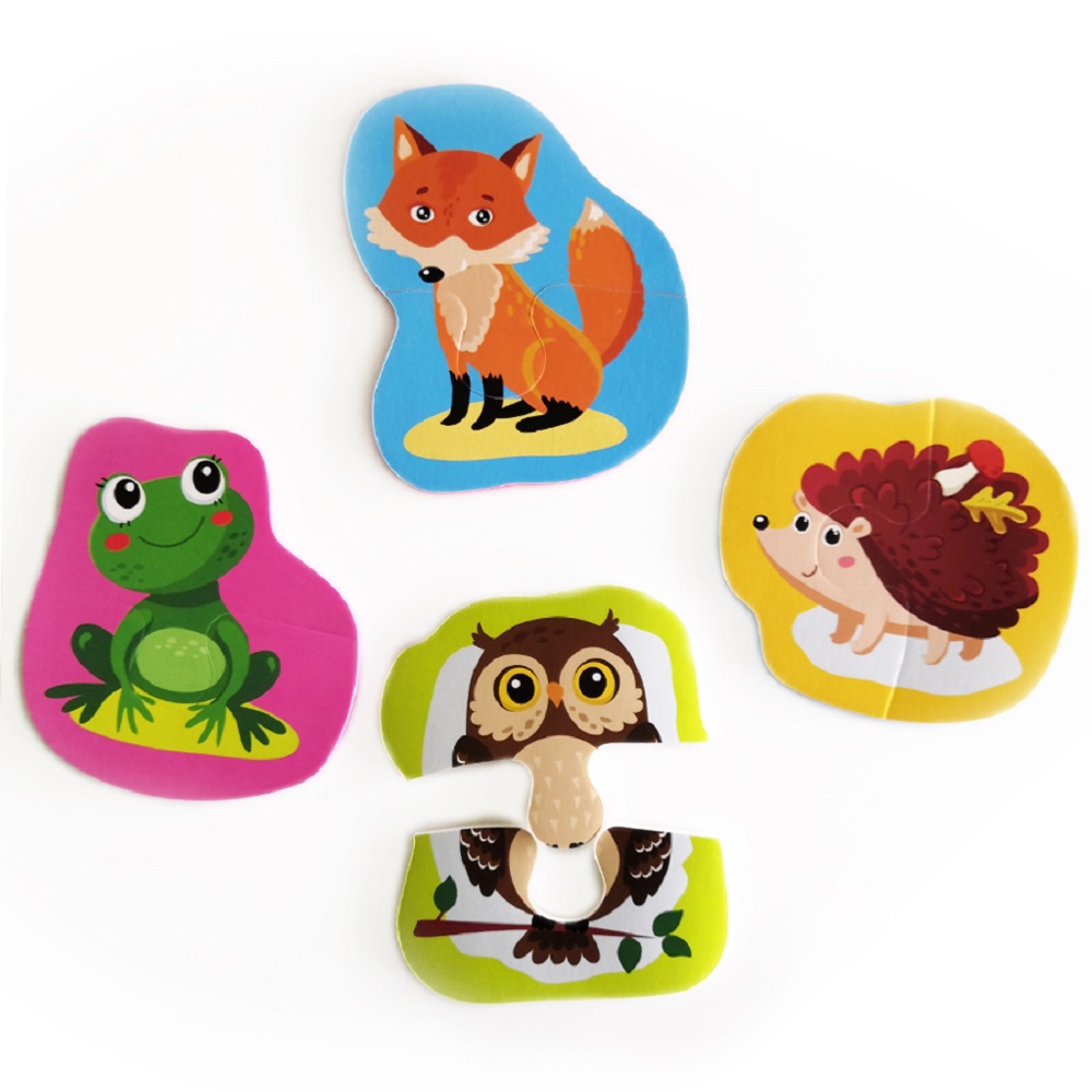 Мягкие пазлы подойдут для самых маленьких. В наборе представлены 4 изображения, которые разделяются на 2 части, поэтому проблем со сборкой картинки у малыша не возникнет. Во время игры малыш сможет познакомиться с некоторыми животными и цветами. Также пазлы способствуют развитию логики, внимания и мелкой моторики.