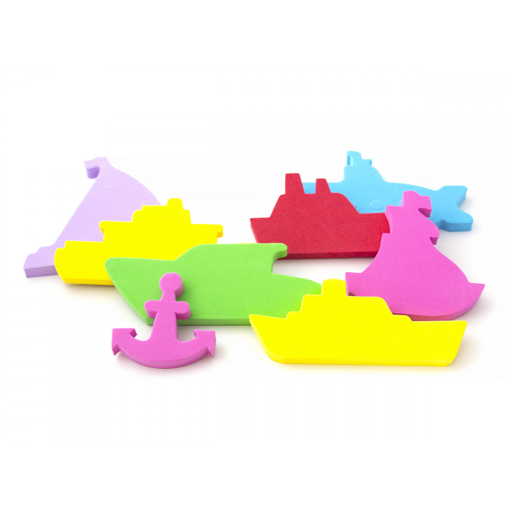 Набор, состоящий из фигурок для купания "Кораблики", выполнен из мягкого и безопасного материала EVA. Цветные фигурки кораблей при смачивании приклеиваются к ровной и гладкой поверхности ванны. Набор для купания "Кораблики" поможет превратить купание малыша в увлекательное морское приключение!