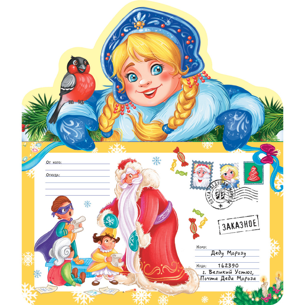 Письмо Деду Морозу - это новогодний конверт, который содержит поле для написания письма Деду Морозу и игровое поле с наклейками, которые нужно приклеить в специально отведённые места, а также раскраску. Конверт выполнен из плотного картона, индивидуально упакован в полипропиленовый пакетик с европодвесом.