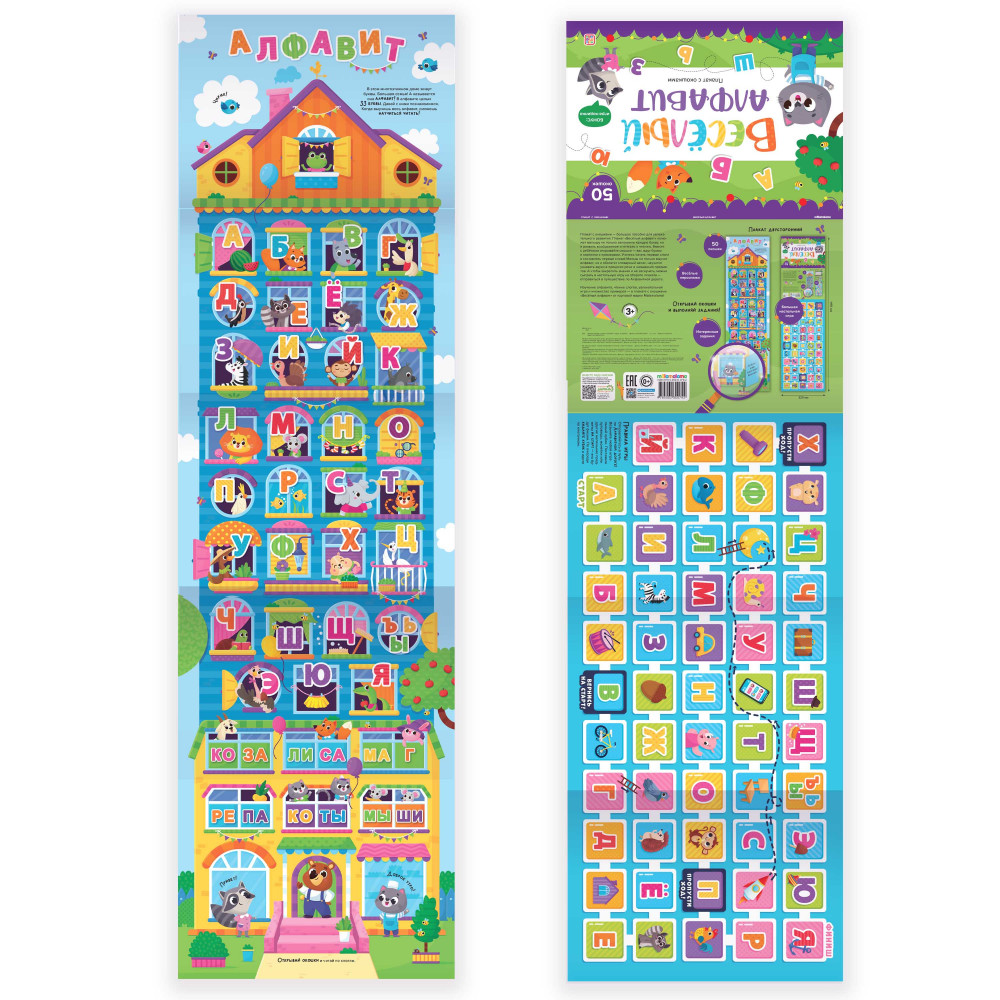 Плакаты с окошками от Malamalama — это уникальный инструмент для получения новых знаний! Плакат «Весёлый алфавит» представляет собой увлекательное пособие для изучения алфавита с разнообразными заданиями и вопросами. Красочные иллюстрации и занимательные окошки стимулируют интерес к занятиям и помогают усваивать информацию в игровой форме. А игра-ходилка на обороте поможет не только выучить буквы, но и весело провести время! Плакат с окошками может служить отличным дополнением к учебному процессу в школе, детском саду или дома. А благодаря яркому дизайну он украсит интерьер любой детской комнаты или класса. Изучать новое весело вместе с Malamalama!