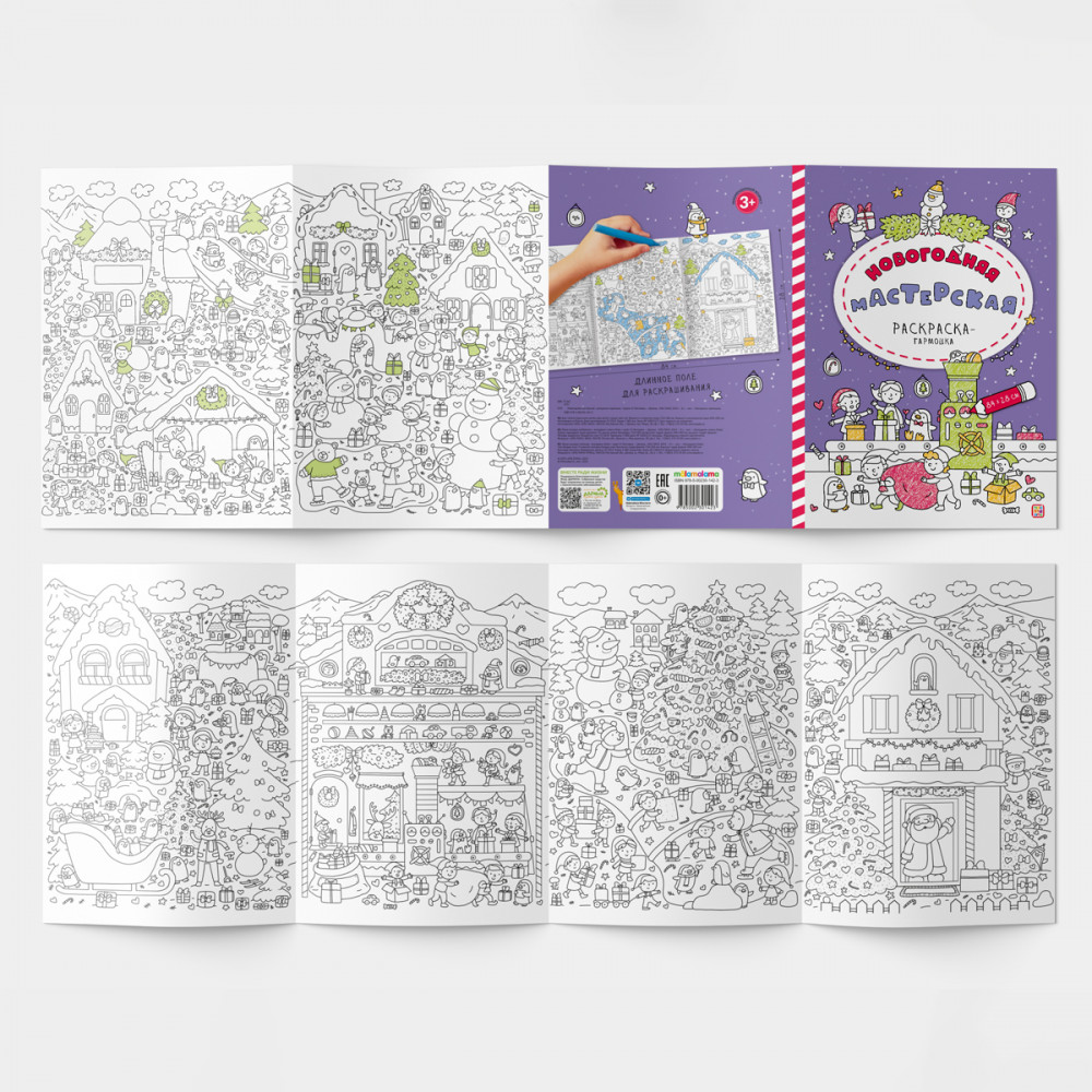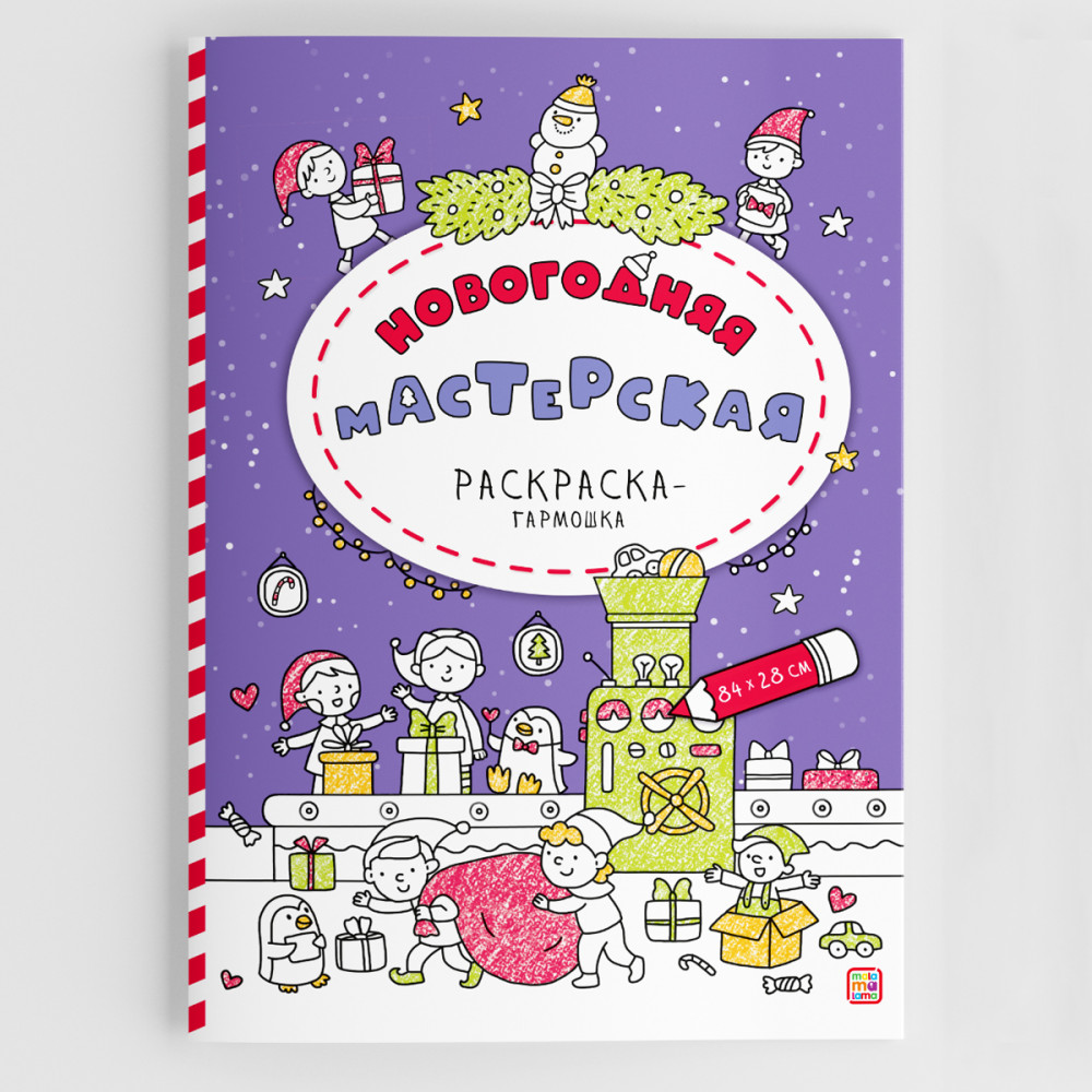 Раскраска-гармошка «Новогодняя мастерская» от торговой марки Malamalama — это отличный способ весело провести время как одному, так и в компании друзей. Брошюра раскладывается в длинное поле для раскрашивания со множеством миниатюрных деталей, поэтому творить можно всем вместе! А тематические новогодние иллюстрации сделают зимние вечера ещё более уютными и праздничными.