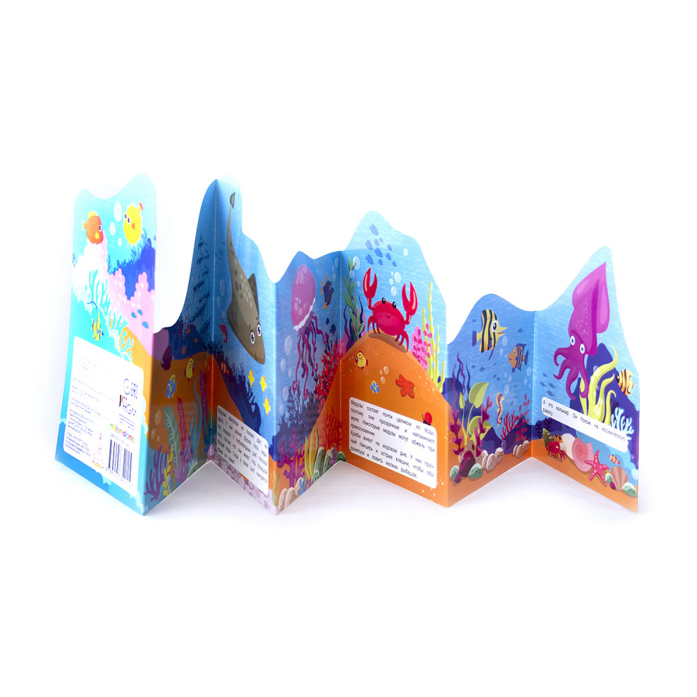 Завораживающей красоты книжка о Море изготовлена в виде гармошки. В сложенном виде ее страницы выступают одна над другой, создавая объем. Разноуровневая книга поможет узнать, кто из морских обитателей живет на дне, кто плавает в воде, а кто на ее поверхности. Книжка изготовлена из высококачественного слим-картона.